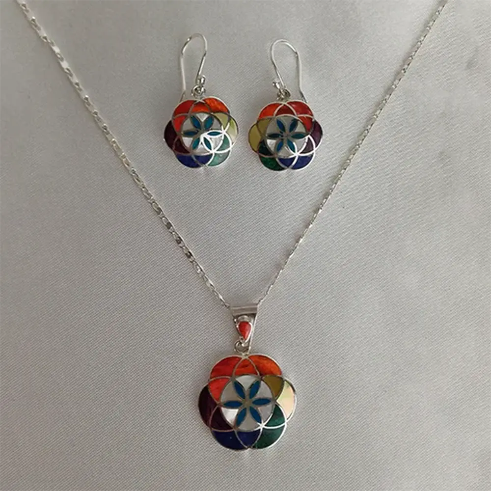 De Flower of Life Rainbow Set is een prachtige sieradencollectie die de kracht van de universele symboliek combineert met levendige kleuren. Vaak geassocieerd met harmonie en verbondenheid, kan deze set een spirituele betekenis toevoegen aan je dagelijkse stijl. Perfect voor wie op zoek is naar een subtiele uitdrukking van balans en energie.