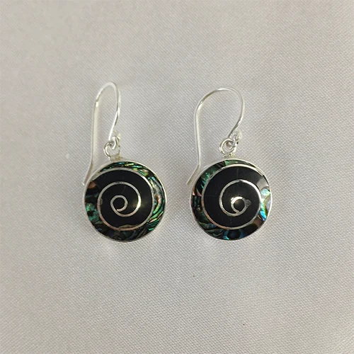 Spiral Abalone & Onyx Earrings